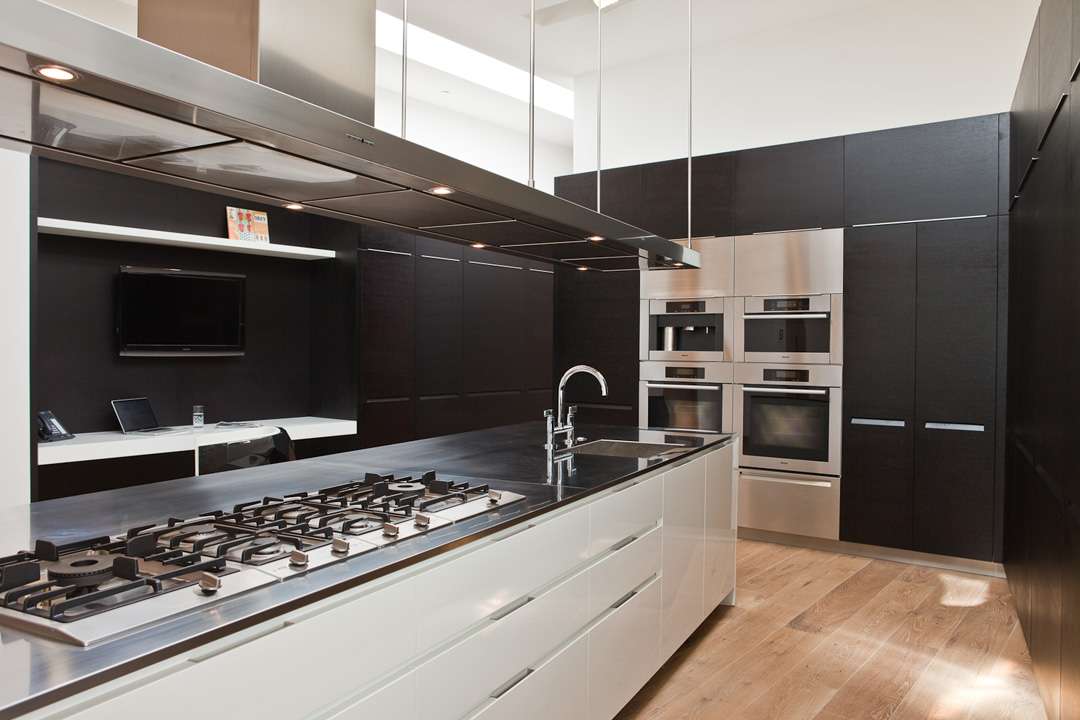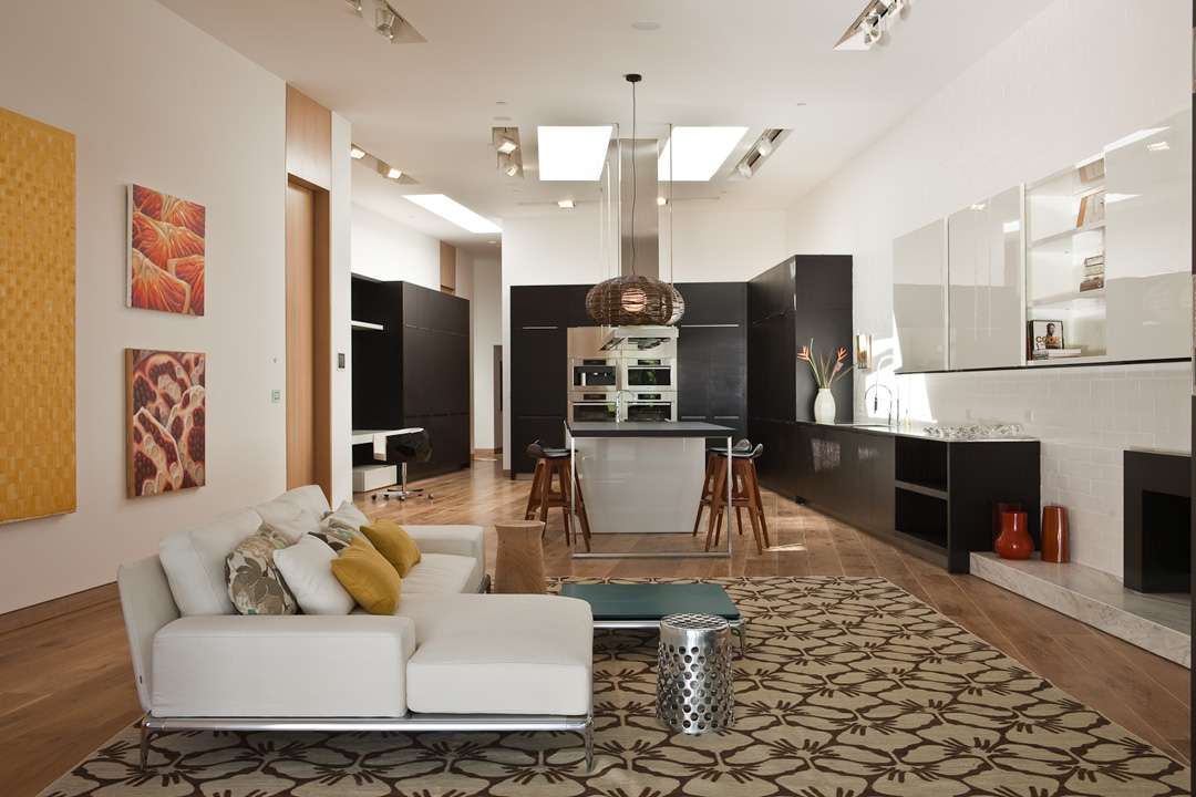 Both formal and casual dining areas, open concept contemporary kitchen design.